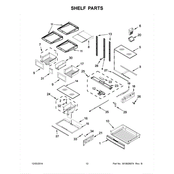 The Storage Drawer is an OEM replacement part for Whirlpool refrigerators. It provides customizable organization for items like snack foods, beverages, and condiments inside the refrigerator cabinet. The drawer measures approximately 27"x 20"x 6". Causes of a bad storage drawer can include broken mounting slides, making it difficult to open or close securely. Overpacking may also cause cracks in the plastic construction over time. Symptoms of a bad storage drawer include: