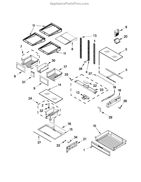 Parts for Whirlpool WRF736SDAM00: Shelf Parts