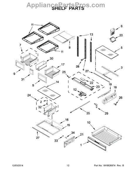 The Storage Drawer is an OEM replacement part for Whirlpool refrigerators. It provides customizable organization for items like snack foods, beverages, and condiments inside the refrigerator cabinet. The drawer measures approximately 27"x 20"x 6". Causes of a bad storage drawer can include broken mounting slides, making it difficult to open or close securely. Overpacking may also cause cracks in the plastic construction over time. Symptoms of a bad storage drawer include: