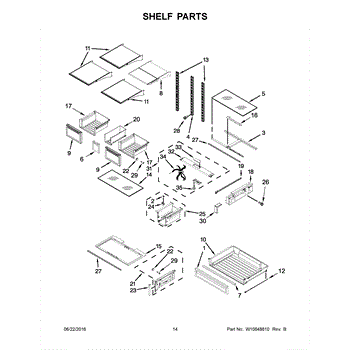 The Storage Drawer is an OEM replacement part for Whirlpool refrigerators. It provides customizable organization for items like snack foods, beverages, and condiments inside the refrigerator cabinet. The drawer measures approximately 27"x 20"x 6". Causes of a bad storage drawer can include broken mounting slides, making it difficult to open or close securely. Overpacking may also cause cracks in the plastic construction over time. Symptoms of a bad storage drawer include: