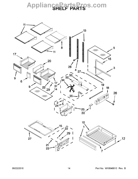 The Storage Drawer is an OEM replacement part for Whirlpool refrigerators. It provides customizable organization for items like snack foods, beverages, and condiments inside the refrigerator cabinet. The drawer measures approximately 27"x 20"x 6". Causes of a bad storage drawer can include broken mounting slides, making it difficult to open or close securely. Overpacking may also cause cracks in the plastic construction over time. Symptoms of a bad storage drawer include: