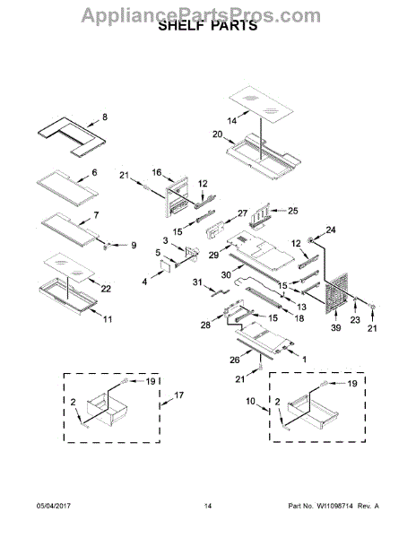 Secures refrigerator shelves and door bins to the liner. Replace if cracked, broken, or missing to restore proper support and prevent sagging shelves.