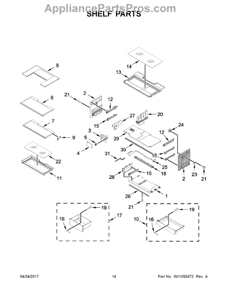 Secures refrigerator shelves and door bins to the liner. Replace if cracked, broken, or missing to restore proper support and prevent sagging shelves.