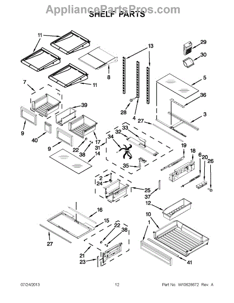 The Storage Drawer is an OEM replacement part for Whirlpool refrigerators. It provides customizable organization for items like snack foods, beverages, and condiments inside the refrigerator cabinet. The drawer measures approximately 27"x 20"x 6". Causes of a bad storage drawer can include broken mounting slides, making it difficult to open or close securely. Overpacking may also cause cracks in the plastic construction over time. Symptoms of a bad storage drawer include: