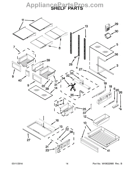 The Storage Drawer is an OEM replacement part for Whirlpool refrigerators. It provides customizable organization for items like snack foods, beverages, and condiments inside the refrigerator cabinet. The drawer measures approximately 27"x 20"x 6". Causes of a bad storage drawer can include broken mounting slides, making it difficult to open or close securely. Overpacking may also cause cracks in the plastic construction over time. Symptoms of a bad storage drawer include: