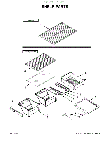 Parts for Whirlpool WRT108FFDB03: Shelf Parts