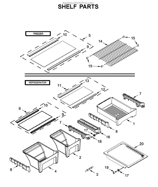 This freezer shelf assembly provides a sturdy, easy-to-clean surface for organizing frozen goods and restoring proper storage spacing. Replaces a cracked, warped, or missing shelf to help keep items secure and accessible. What it does: