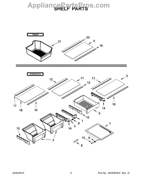 Full-width shelf assembly that restores a stable storage surface in the refrigerator fresh-food compartment. Replaces cracked, warped, or missing shelves to keep food and containers organized and supported. What it does:
