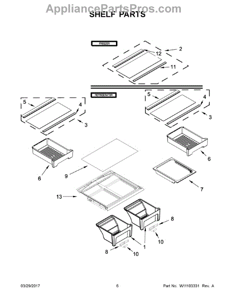 Replaces the front edge trim on refrigerator shelves. Installs along the shelf edge to prevent items from sliding and provide a finished look.