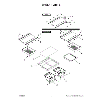Plastic frame that holds the glass shelf above crisper drawers. Replace if cracked, broken, or damaged from weight or impact. Frame only, glass sold separately.