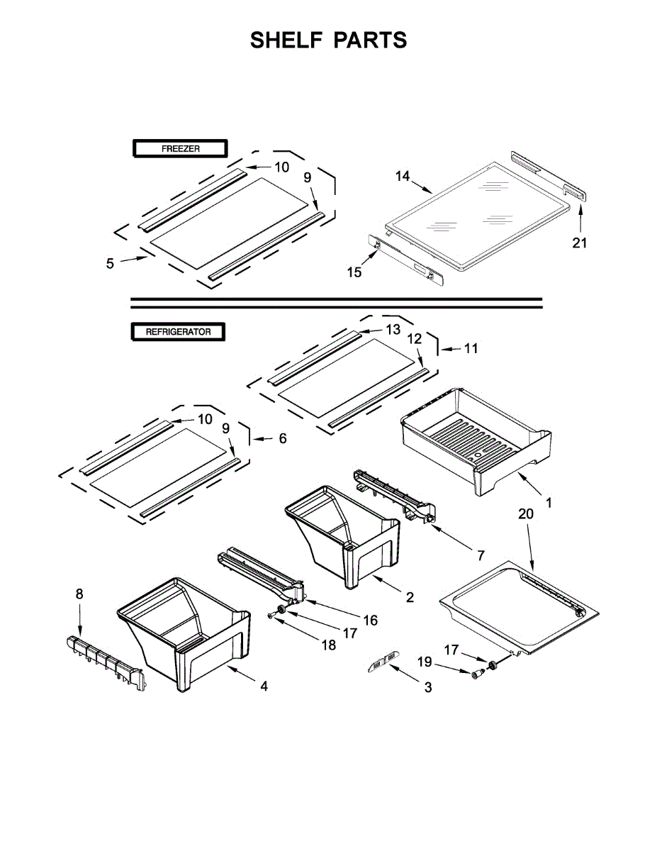 This freezer shelf assembly provides a sturdy, easy-to-clean surface for organizing frozen goods and restoring proper storage spacing. Replaces a cracked, warped, or missing shelf to help keep items secure and accessible. What it does: