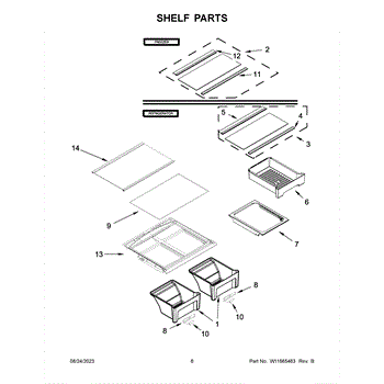 Plastic frame that holds the glass shelf above crisper drawers. Replace if cracked, broken, or damaged from weight or impact. Frame only, glass sold separately.