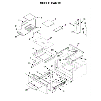 Replacement glass shelf for bottom-mount refrigerators. Provides storage surface in main compartment. Replace if cracked, chipped, or broken.
