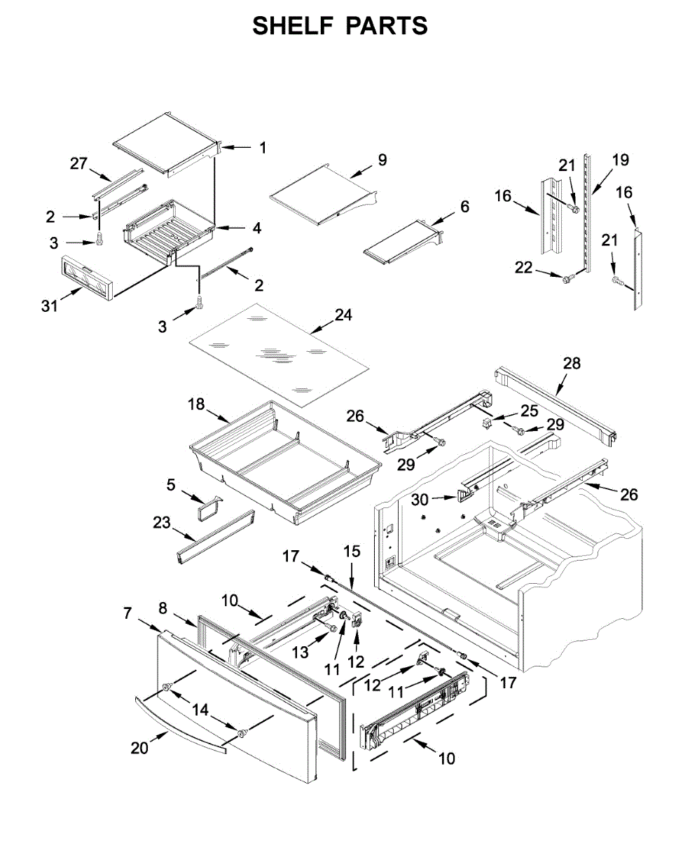 Glass cantilever shelf for your refrigerator's fresh food compartment. Replaces cracked, broken, or missing shelves above vegetable bins.