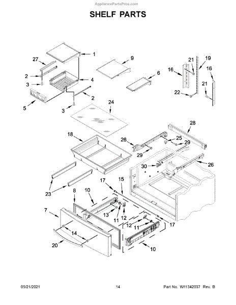 Glass cantilever shelf for your refrigerator's fresh food compartment. Replaces cracked, broken, or missing shelves above vegetable bins.
