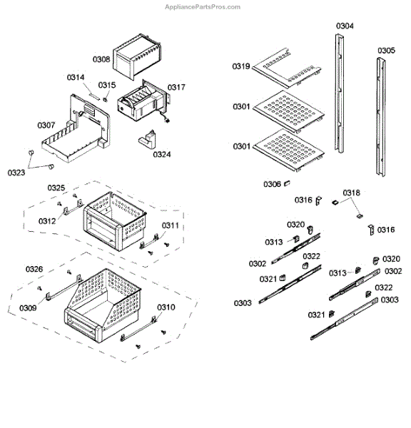 • Guides the lower rack along the tub rails for even, reliable sliding