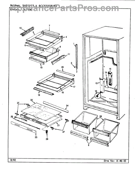 This factory screw secures appliance components to their mounting points. Replace missing, worn, or stripped hardware to restore a tight fit, proper alignment, and quieter operation across the affected assembly.