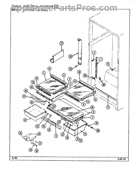 This factory screw secures appliance components to their mounting points. Replace missing, worn, or stripped hardware to restore a tight fit, proper alignment, and quieter operation across the affected assembly.