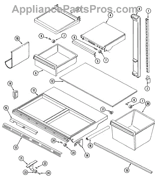 This factory screw secures appliance components to their mounting points. Replace missing, worn, or stripped hardware to restore a tight fit, proper alignment, and quieter operation across the affected assembly.