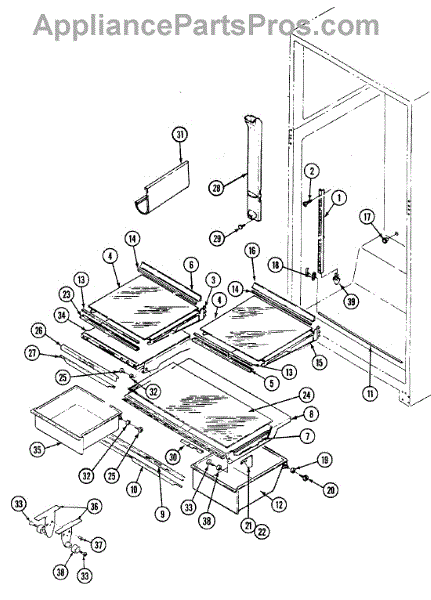 This factory screw secures appliance components to their mounting points. Replace missing, worn, or stripped hardware to restore a tight fit, proper alignment, and quieter operation across the affected assembly.