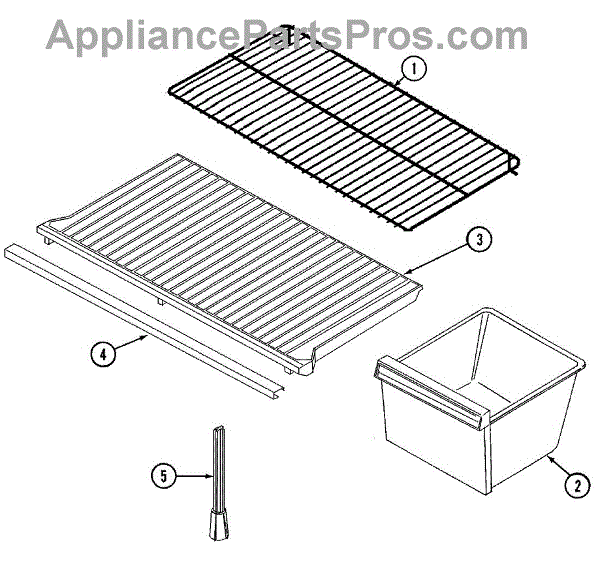 The crisper shelf center support stabilizes the pan cover above the crisper drawers to keep it level under load. Replace a cracked or missing support to restore proper shelf alignment and smooth crisper drawer operation.