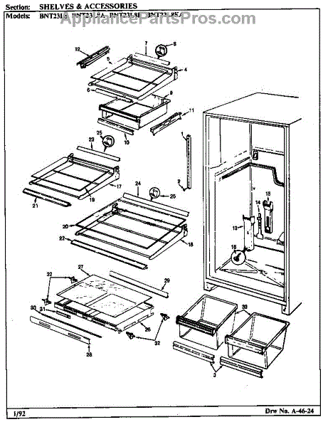 Parts for Maytag BNT23L8K/BL96A: Shelves & Accessories Parts