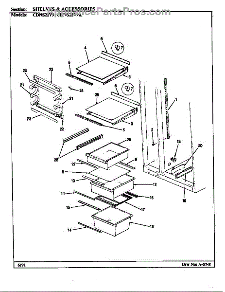 Parts for Maytag CDNS22V9/BR36F: Shelves & Accessories (Cdns22v9 / Br35e) (Cdns22v9 / Br35f) (Cdns22v9a / Br36e) (Cdns22v9a / Br36f) Parts