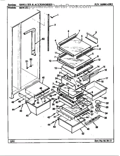 This factory screw secures appliance components to their mounting points. Replace missing, worn, or stripped hardware to restore a tight fit, proper alignment, and quieter operation across the affected assembly.