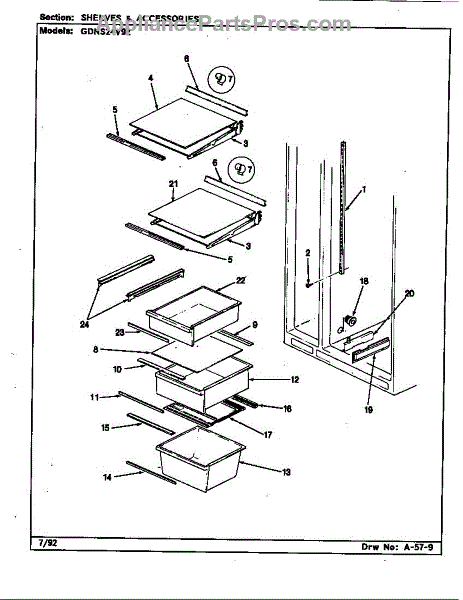 Parts for Maytag GDNS24V92/CP83A: Shelves & Accessories Parts