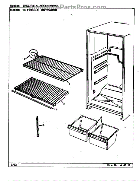 Parts for Maytag GNT15M4XA/CF08A: Shelves & Accessories Parts
