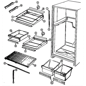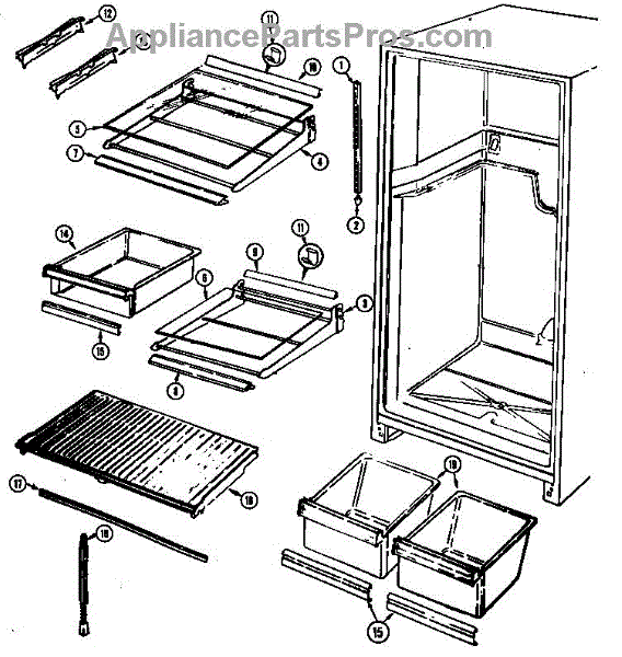 The crisper shelf center support stabilizes the pan cover above the crisper drawers to keep it level under load. Replace a cracked or missing support to restore proper shelf alignment and smooth crisper drawer operation.