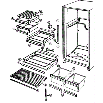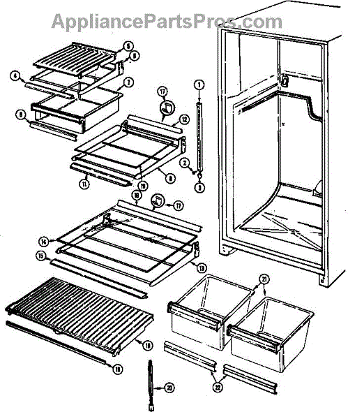 The crisper shelf center support stabilizes the pan cover above the crisper drawers to keep it level under load. Replace a cracked or missing support to restore proper shelf alignment and smooth crisper drawer operation.