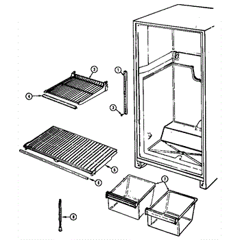 The crisper shelf center support stabilizes the pan cover above the crisper drawers to keep it level under load. Replace a cracked or missing support to restore proper shelf alignment and smooth crisper drawer operation.