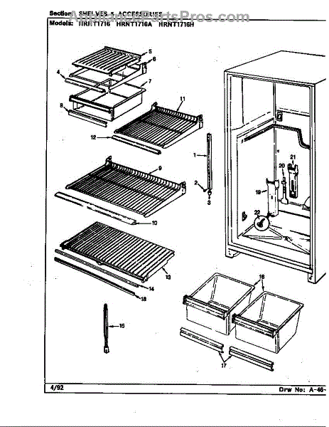 The crisper shelf center support stabilizes the pan cover above the crisper drawers to keep it level under load. Replace a cracked or missing support to restore proper shelf alignment and smooth crisper drawer operation.