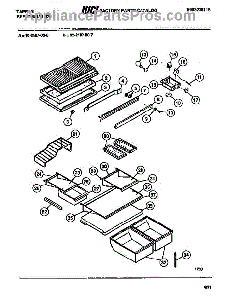 Parts for Frigidaire 95-2187-66-07: 03 - Shelves, Controls, Divider, Mullion Parts