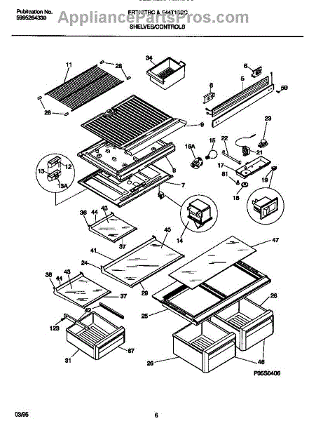 Replacement screw for securing shelf rails, meat pan brackets, and interior panels in refrigerators. Use when original screws are missing, stripped, or lost.
