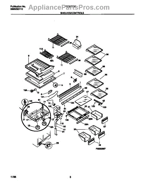 Parts for Frigidaire FRT22TSEW0: 04 - Shelves / Controls Parts