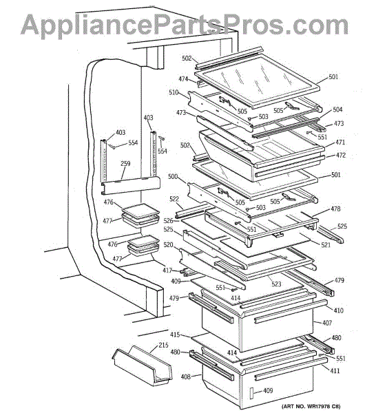 Causes for a malfunctioning Crisper Drawer Slide can include wear and tear from regular use, the accumulation of debris obstructing the slide's path, or damage incurred from overloading the drawer. This GE replacement part is also compatible with Hotpoint, RCA, and some Kenmore models. For matching left-hand side order WR72X209.