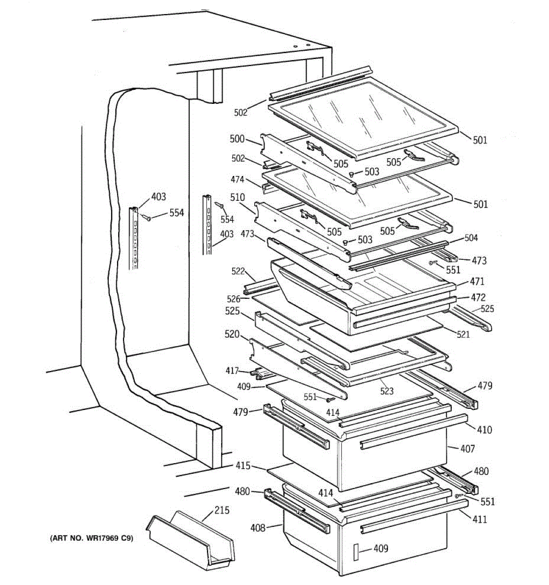 Causes for a malfunctioning Crisper Drawer Slide can include wear and tear from regular use, the accumulation of debris obstructing the slide's path, or damage incurred from overloading the drawer. This GE replacement part is also compatible with Hotpoint, RCA, and some Kenmore models. For matching left-hand side order WR72X209.