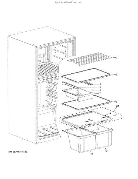Parts for Ge GTE21GTHFBB: Shelves & Drawers Parts