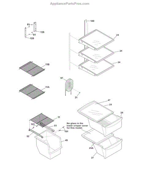 This Glass Shelf Inset is an OEM replacement part for Frigidaire refrigerators. Crafted from durable transparent glass, this shelf creates an enclosed area optimized for storing fruits and vegetables in the upper fridge compartment. Causes of a damaged glass shelf insert can include chips or cracks developing from impact or excessive weight loads over time. Symptoms of an inadequate upper crisper pan include: