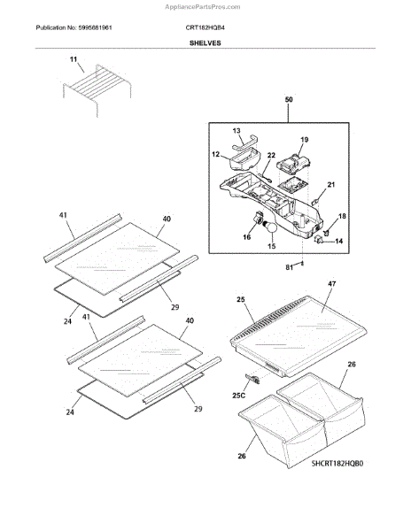 Parts for Crosley CRT182HQB4: Shelves Parts