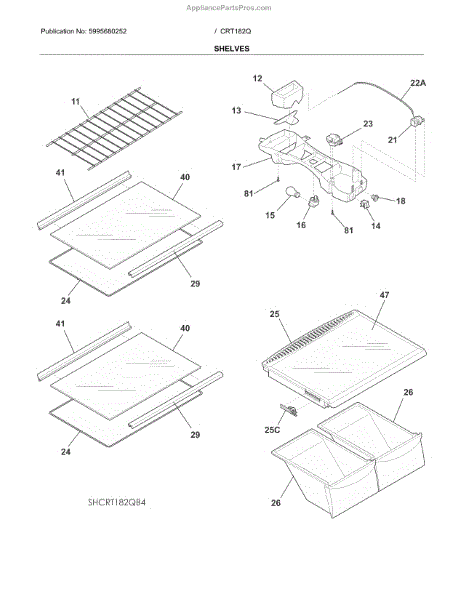 Parts for Crosley CRT182QB5A: Shelves Parts