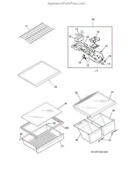 Parts for Crosley CRT206HQB1: Shelves Parts
