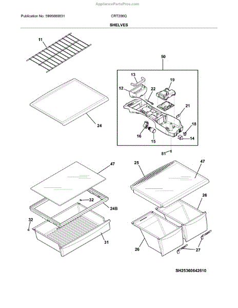 The Crisper Pan Cover is an OEM part for Frigidaire refrigerators. It serves as the shelf that sits above the crisper drawers and supports various items while providing a lid to help maintain the humidity levels necessary to keep fruits and vegetables fresh longer. This cover typically is only the frame and does not include the glass.