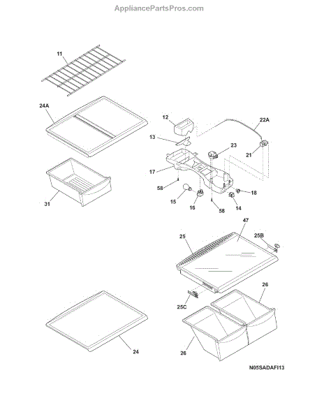 Parts for Crosley CRT215HPS2: Shelves Parts