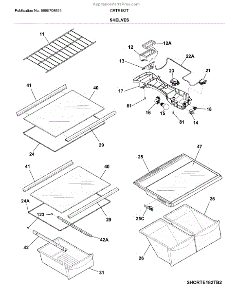 Parts for Crosley CRTE182TS3: Shelves Parts