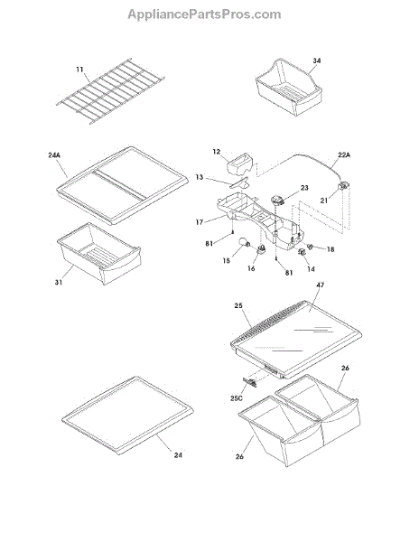 Parts for Crosley CRTE184IJB0: Shelves Parts