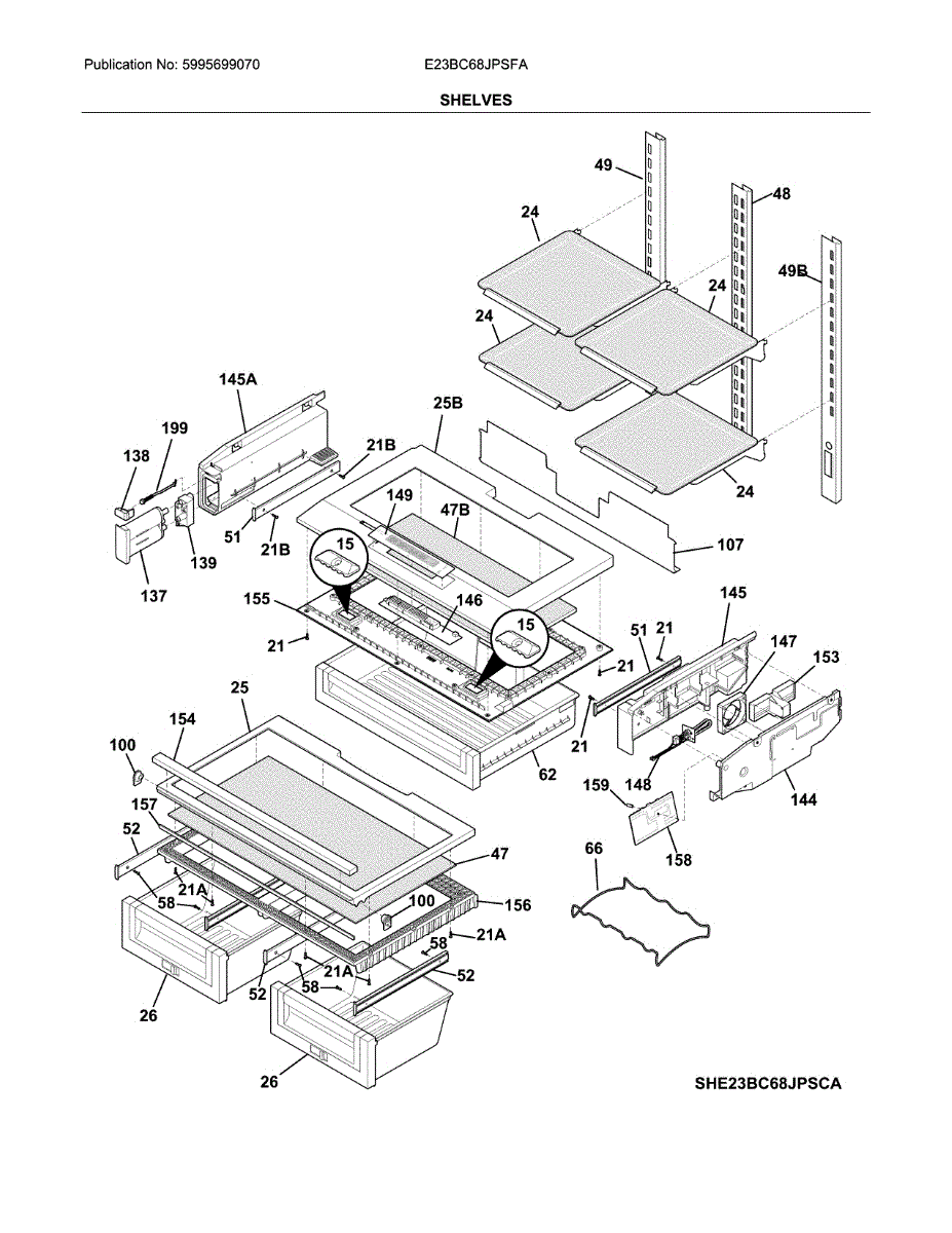 Supports the glass shelf above crisper drawers and forms drawer tracks. Replace this frame if cracked, warped, or broken to restore stable shelving.