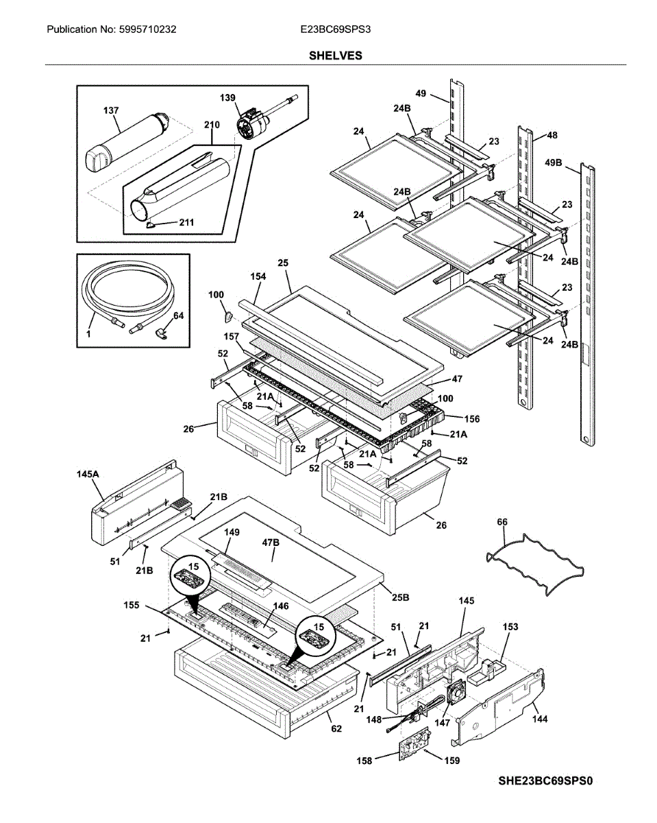 Supports the crisper shelf glass and forms the top of humidity drawers. Replace if cracked, warped, or broken from heavy loads or impact.